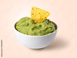 bowl with guacamole and nachos