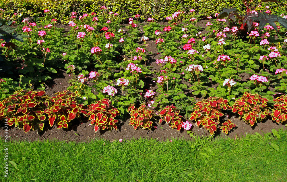 Flowerbed with geranium flowers