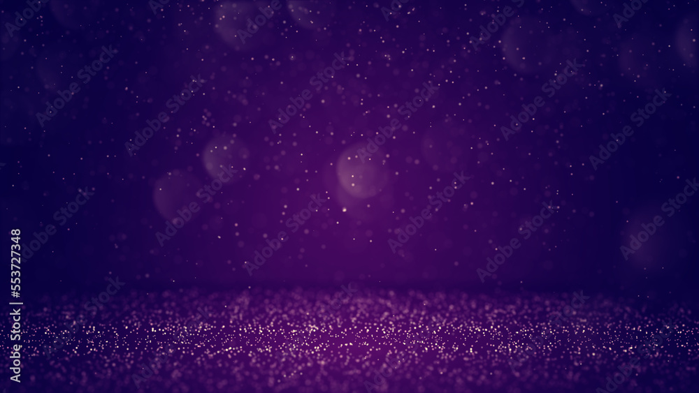 Defocused Golden Particles Glittery Dark Background with Copy Space. Shining glow bokeh background