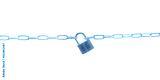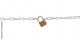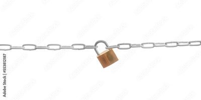 Two silver colored chains connected by a small gold colored lock isolated png with transparency