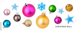 Christmas baubles, snowflake and star set. PNG with transparent background. Flat lay. Without shadow.