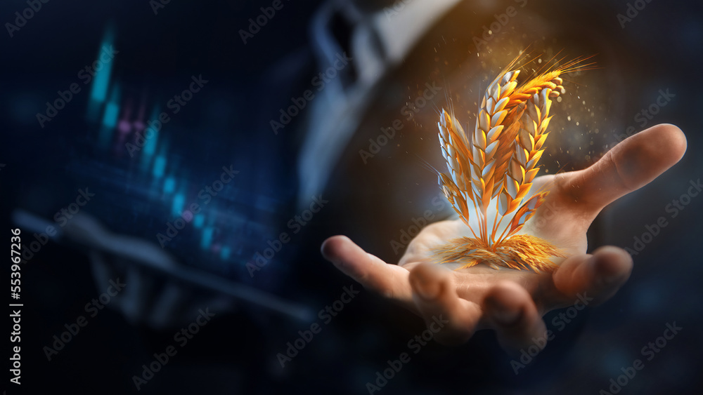 Rising wheat prices concept. Flour and wheat crisis. Record prices and high prices for bakery