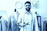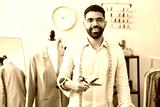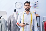 Young arab man tailor smiling confident holding scissors at tailor shop