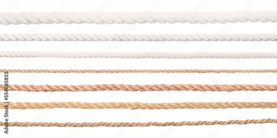 Ropes set. Collection of different straight long ropes. Png isolated with transparency