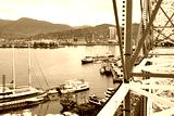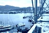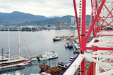 View of the seaport of Batumi, Georgia from above, cargo ships, yachts and boats in the port
