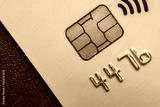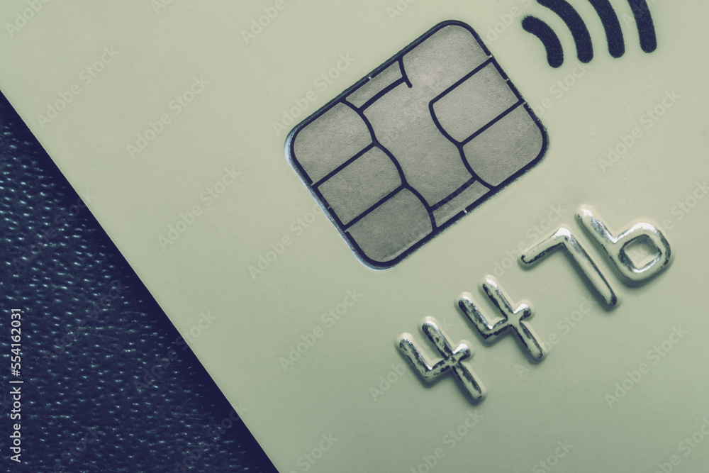 Close-up shot of a debit or credit card with a chip.