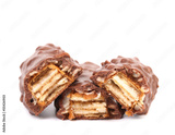 Broken chocolate bars with filling.