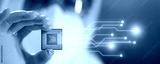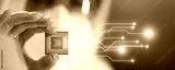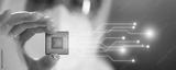 Close-up of Professional Scientist Holding a Modern Microprocessor Chip in Hand. Scientific Laboratory, Research and Development of Microelectronics and Processors. Computer Technology and Equipment.