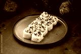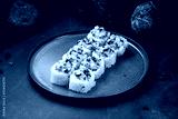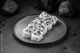 Rolls set with shrimp, cream cheese, romaine, cucumber, tobiko caviar, herbs and spicy sauce.