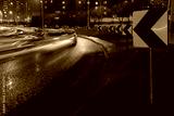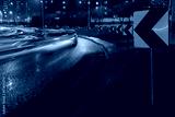 Evening car traffic in a big city. Cars in motion and standing in traffic jams. Long exposure exposure and headlight trails