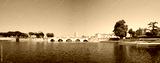 Tiberius bridge in Rimini on a background of blue sky