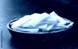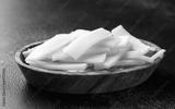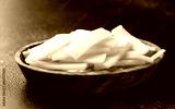 Sliced canned bamboo shoots in wooden bowl