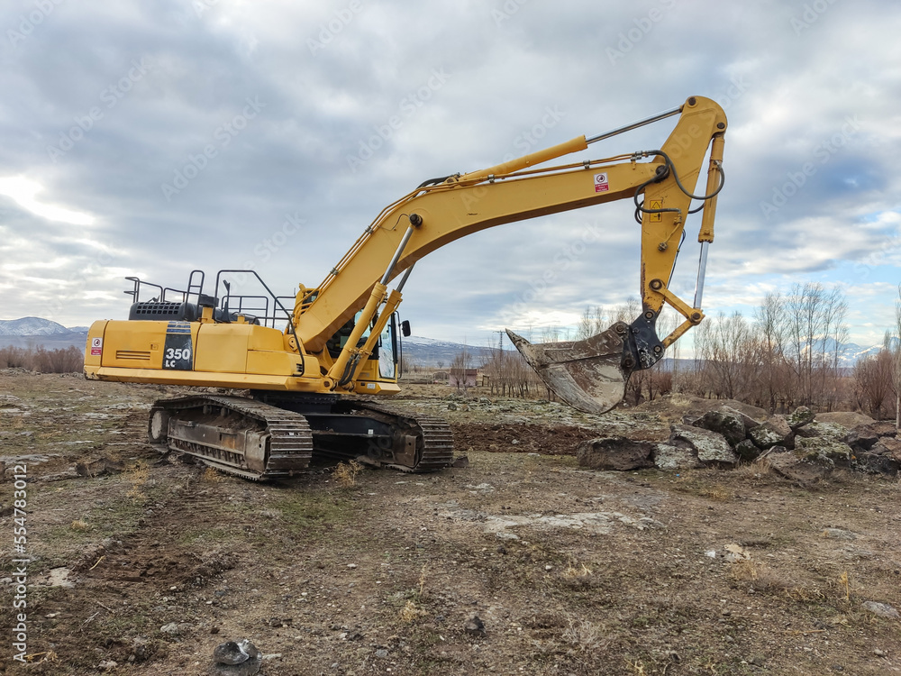 Excavator working in the field
