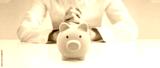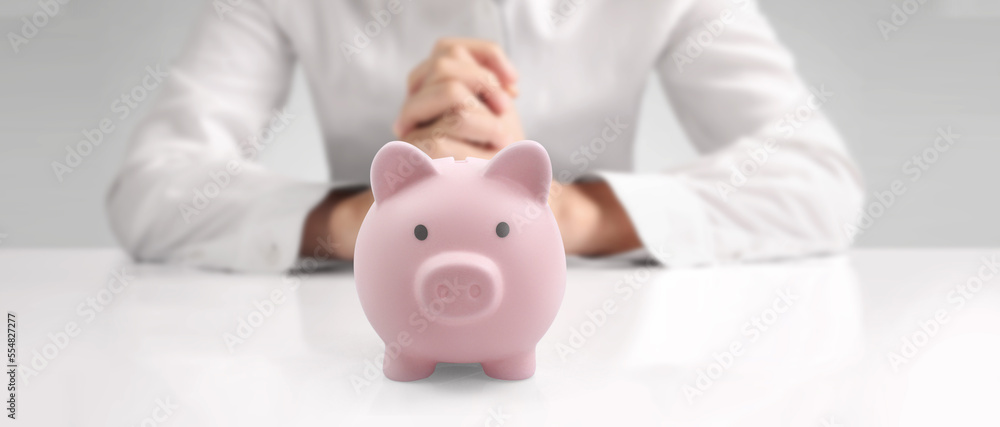 Hand put coin money to piggy bank, saving and deposit money concept