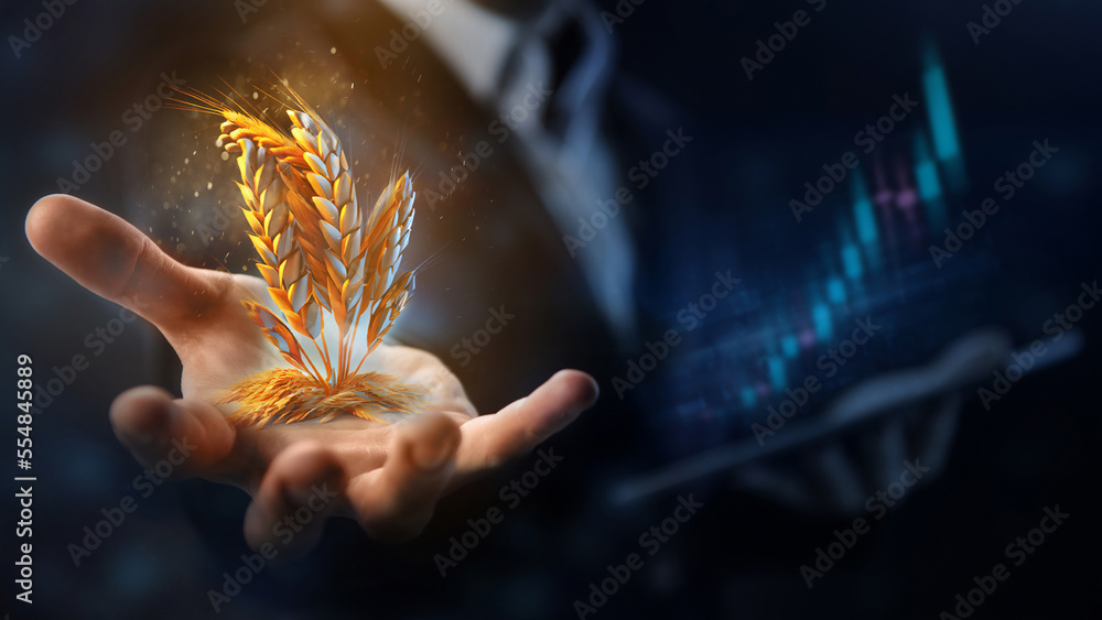 Rising wheat prices concept. Flour and wheat crisis. Record prices and high prices for bakery