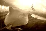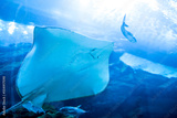 Large aquarium in Dubai with cramp-fish close up. Underwater wildlife