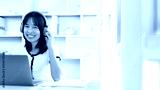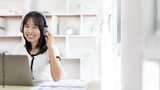 Young Asian woman happily listening to music through headphones, Girl was enjoying listening to her favorite music and rocking to the beat of the music, Stress relief, Happiness in life.
