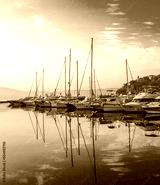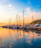 Marina with docked yachts at sunrise in Tarabya, Turkey