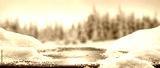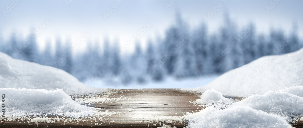 Desk of free space and winter landscape.