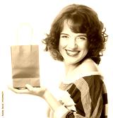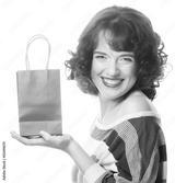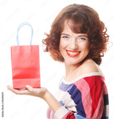 happy woman with shopping bag and gift.