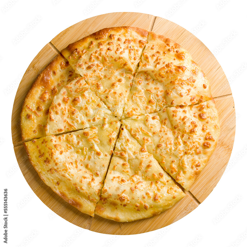 khachapuri with cheese, megrelian khachapuri, georgian cuisine top view isolated on white background