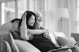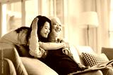 asian elderly father and adult daughter having a good time