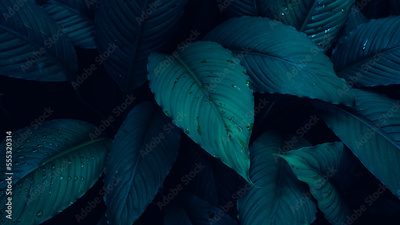 Full Frame of Green Leaves Pattern Background, Nature Lush Foliage Leaf Texture, tropical leaf