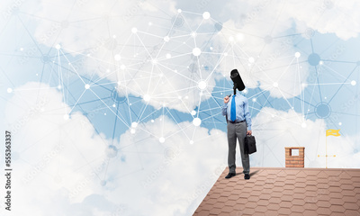 Concept of security and privacy protection with camera headed man
