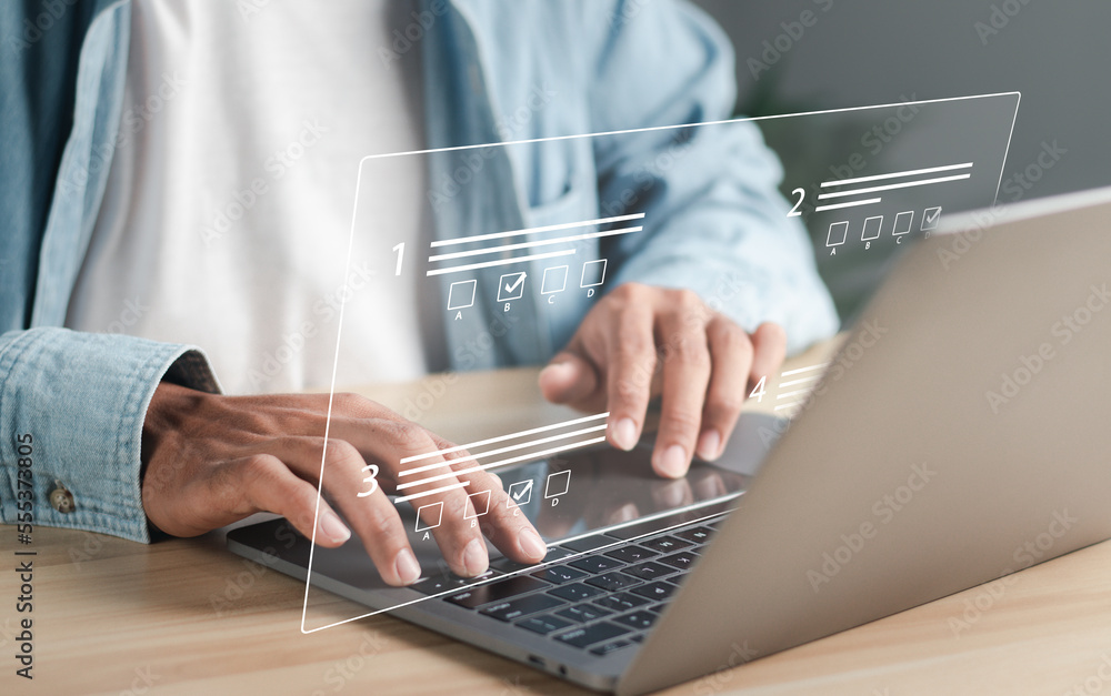 Choose the correct answer on the exam. Questionnaire with checkboxes, filling survey form online.