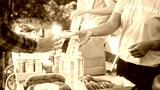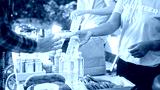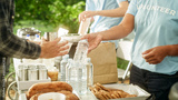 Close Up of an Anonymous Person Handing Over a Water Bottle to Another Person. Green Background in Nature. Outdoors Fourt Court Selling Drinks. Ecology, Healthcare and Hydration Concept.
