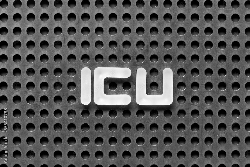 White alphabet letter in word ICU (abbreviation of intensive care unit) on black pegboard background