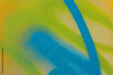 Fragment of old plaster wall with graffiti painting. Part of colorful street art graffiti on wall background. Youth, urban culture. Yellow, green, light blue colors