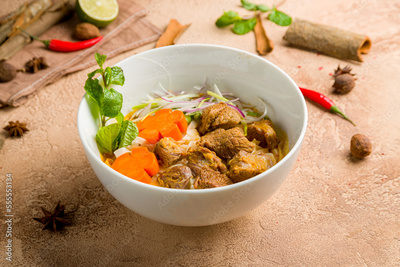 Vietnamese noodles with stewed beef and vegetables, Bun chon