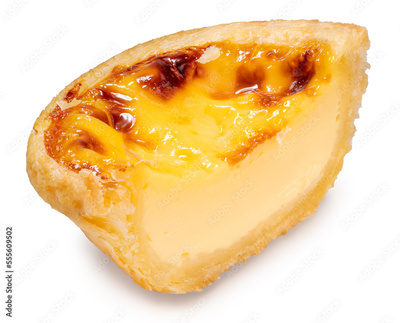 Egg tart isolated on white background, Portuguese egg tart on white With clipping path.