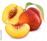 Red Peach fruit with leaf isolated on white background, Fresh Red Peach on White Background With clipping path