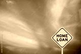 Yellow transportation sign with word home loan on violet color sky background
