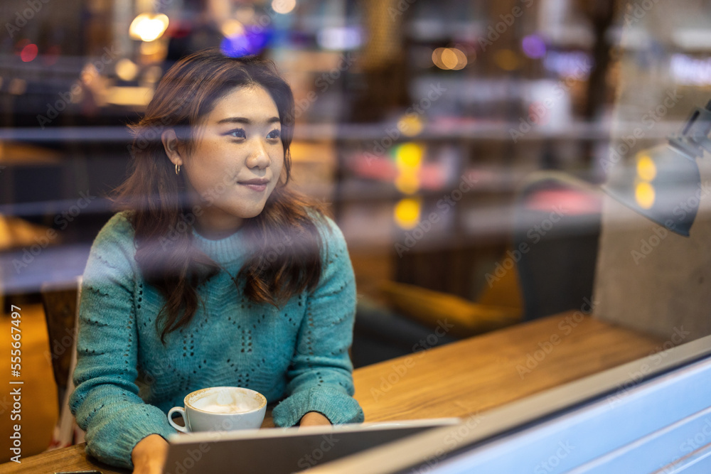 Young woman drinking coffee in cafe