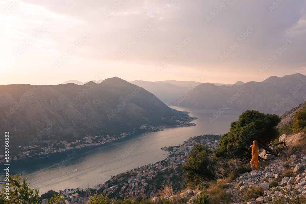 Woman tourist enjoying the view of Kotor. Montenegro.