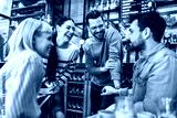 Happy friends having a great time in cafe. Group of young people sitting in a coffee shop ,drinking coffee.