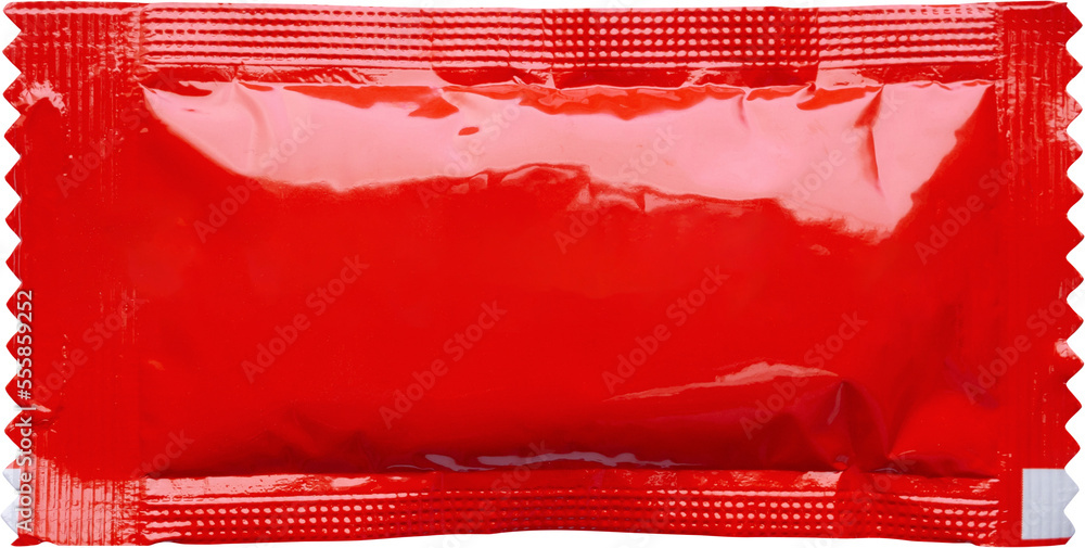 Blank red foil tomato ketchup sauce sachet package isolated on white background