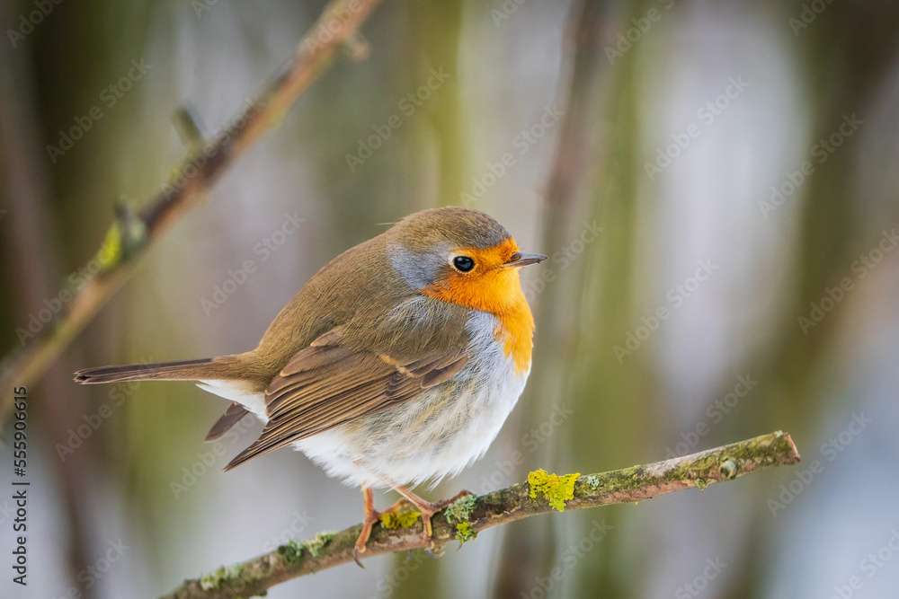Robin closeup on winter setting, Erithacus rubecula, Italy
