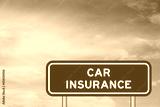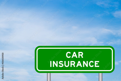 Green color transportation sign with word car insurance on blue sky with white cloud background