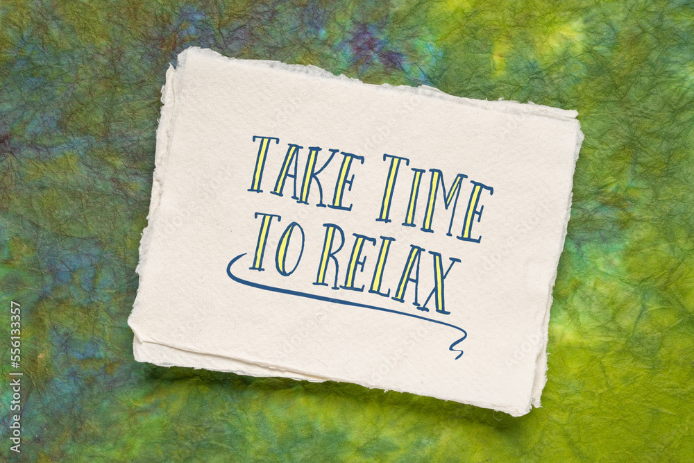take time to relax, inspirational reminder - handwriting on a watercolor paper, self care concept