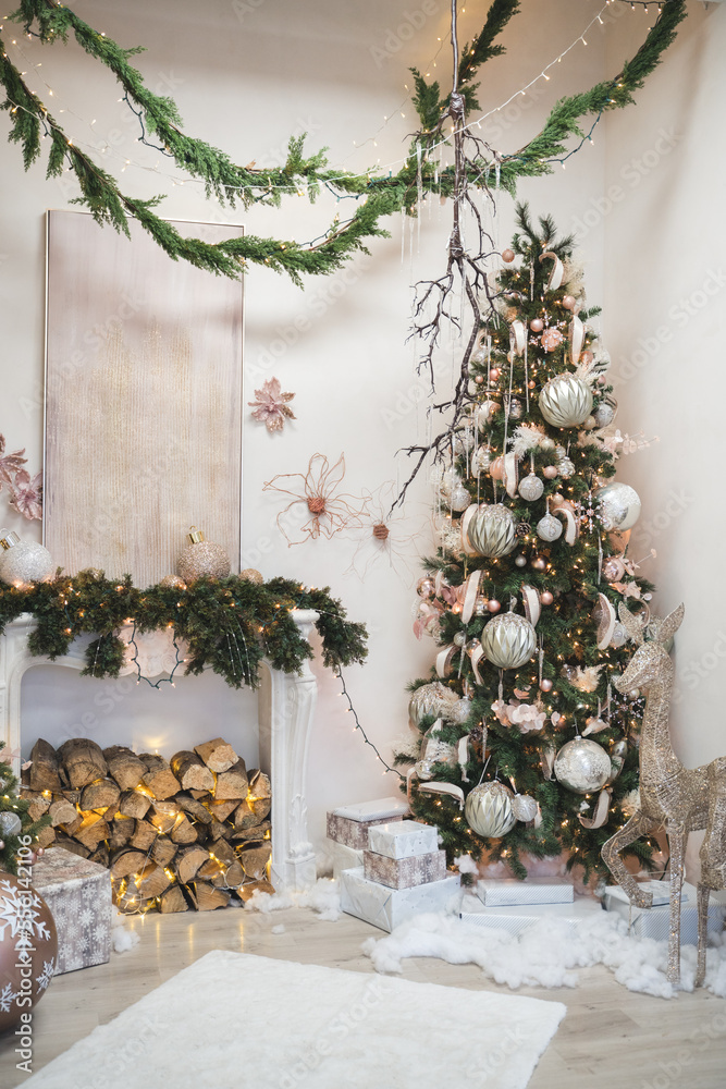 Beautiful Christmas Indoor Backdrop with Christmas Decor