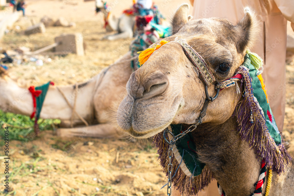 Camels for Tourist in Aswan Desert Landscape. Aswan, Egypt.