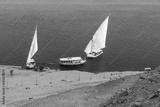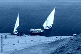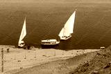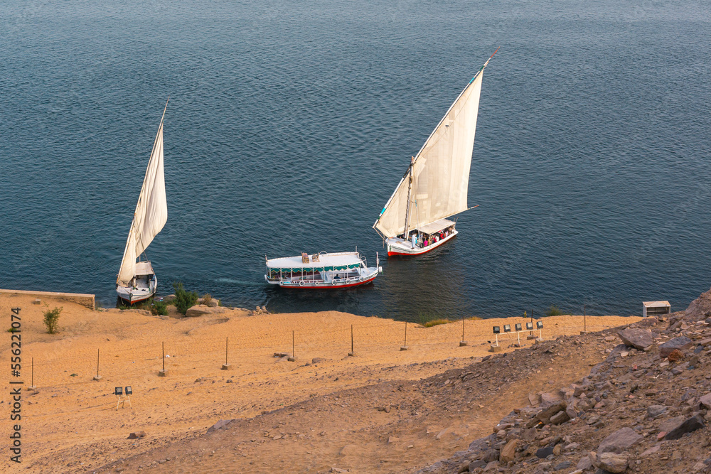 Felucca (river boat) on the Nile, with the Sahara behind in Aswan, Egipt.