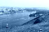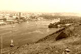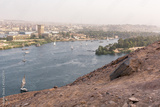 Felucca (river boat) on the Nile, with the Sahara behind in Aswan, Egipt.