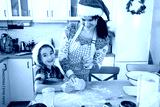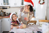 Mom and daughter in the white kitchen are preparing cookies for Christmas and new year. Family day, preparation for the holiday, learn to cook delicious pastries, cut shapes out of dough with molds