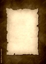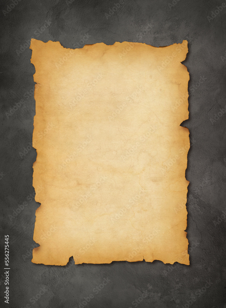 Old mediaeval paper sheet. Parchment scroll on a concrete wall