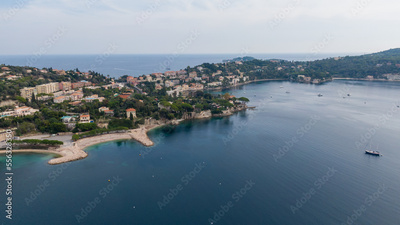 Villefranche, small town in france, French Riviera, Drone view on coast and town